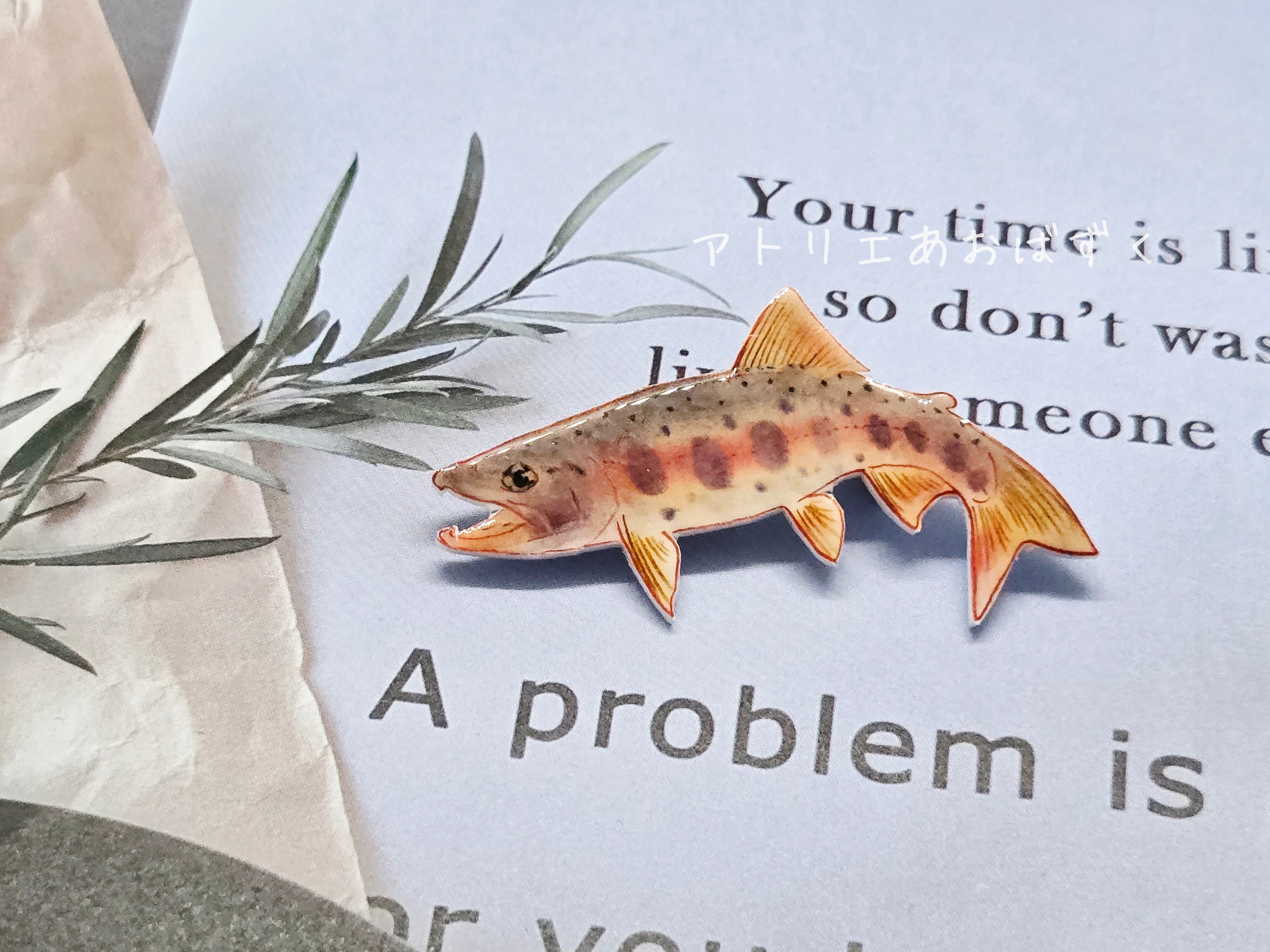 秋のヤマメ (Type白) のブローチ