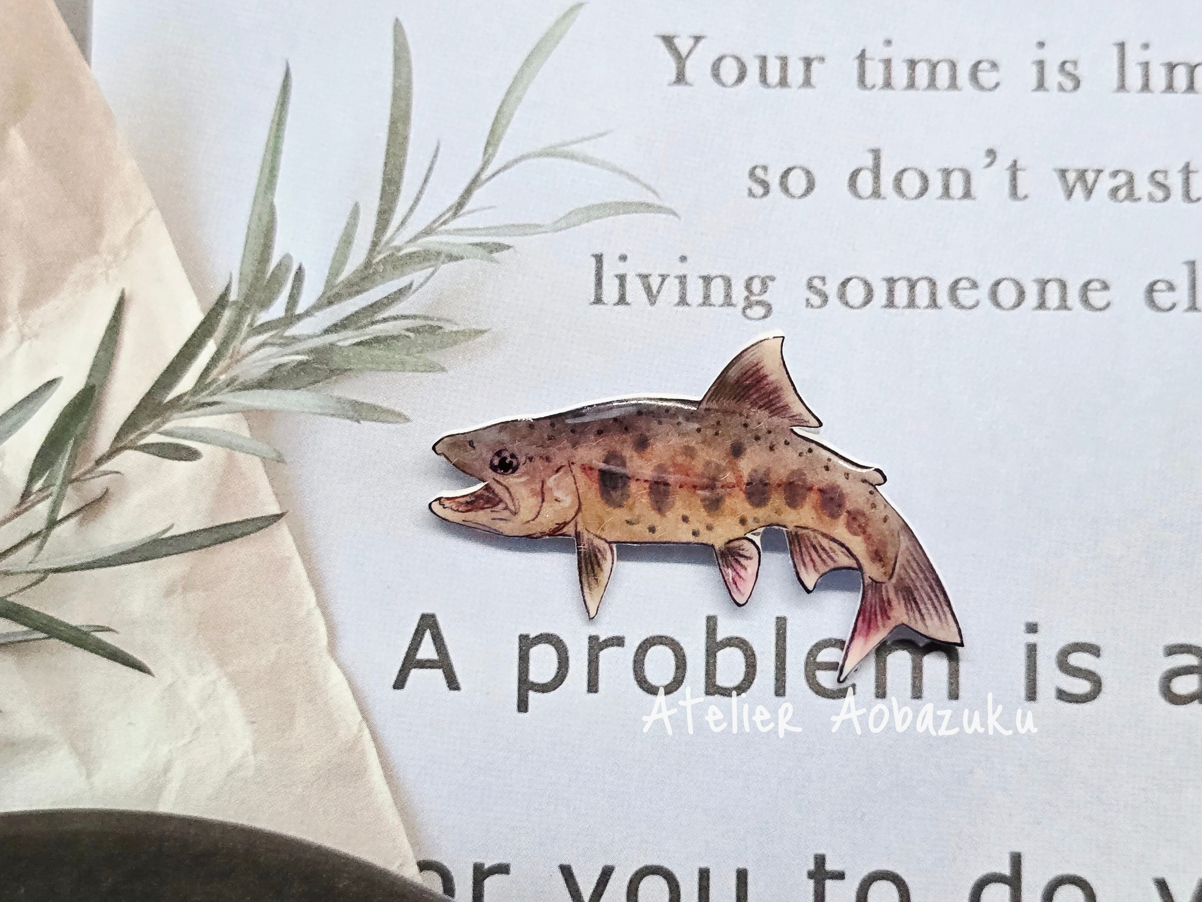 秋のヤマメ (Type黒) のブローチ